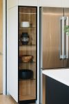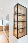 The Transitional Curio can be integrated into other built-ins as a small glass showcase in a kitchen or bathroom, or as a standalone piece of furniture. It’s wide range of materials is vast, giving you a lot of choices.
