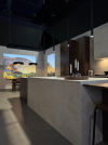 Situé à l’entrée du pavillon sud de l'événement, notre kiosque a capté l'attention et accueilli les visiteurs avec ses grandes fenêtres offrant une vue imprenable sur un paysage du Bas-Saint-Laurent — une manière d’apporter un peu de chez nous et de nos racines jusqu’à Las Vegas. Cette cuisine présentait notre nouveau Néolaminé Master oak cendré, agencé à un comptoir en surface compacte de ½ pouce, créant un espace d’élégance qui inspire la tranquillité. Les électroménagers ont été soigneusement dissimulés, contribuant ainsi au mouvement minimaliste de l’espace. Et que dire de l’arrière-cuisine, où l’attention aux détails prend tout son sens avec notre Curio sans porte qui illumine la pièce.