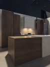 - Avec ses armoires aux façades rectilignes et parfois même sans poignées, elle dégage une certaine quiétude. L’ajout de quelques courbes en accent peut lui apporter légèreté et convivialité. Les tons neutres, les essences de bois naturels ainsi que les matériaux nobles, notamment en surface de comptoir, lui confèrent une élégance indémodable.